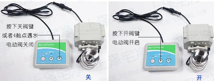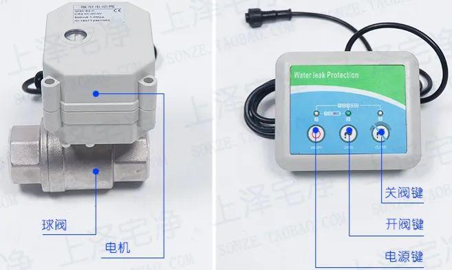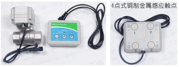 例:水(shuǐ)浸式漏水(shuǐ)保護器(qì)(下(xià)左:×" 電(diàn)動閥;下(xià)右:漏水(shuǐ)感應控制(<∑€zhì)器(qì))